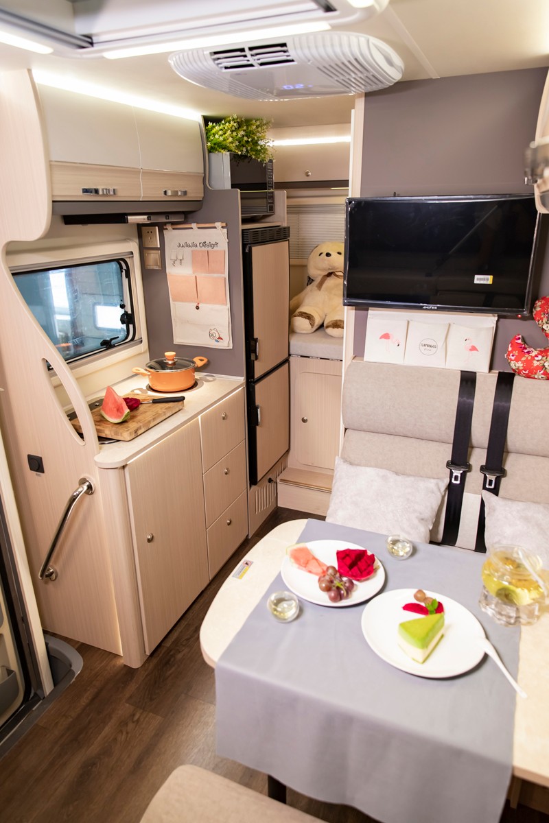 覽眾C7款房車布局也是非常合理十分顯空間的,雖然車長(zhǎng)控制在6米內(nèi),但是單排的駕駛室讓后部有更大的生活空間。額頭超大的雙人床,下部對(duì)坐沙發(fā),休閑娛樂(lè)使用還是挺好的,最關(guān)鍵的是晚上休息還可以i拼成一張單人床。后部位衛(wèi)生間和廚房,使用也是很方便的。尾部的單人床更是用途非常大,不僅僅是休息一人使用更重要的是床下邊的超大儲(chǔ)物功能,左右通透能外部拿取行李也能床下邊打開儲(chǔ)物艙門拿取行李。十分的方便。